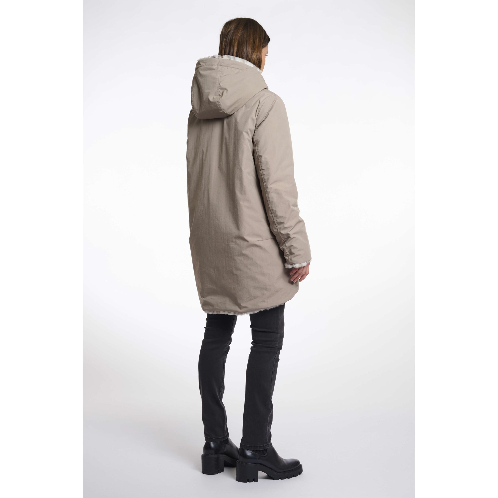On adore ce beau basique 2-en-1, à porter côté toile pour le quotidien , à vélo.. et côté fourrure pour un manteau chic et chaud!