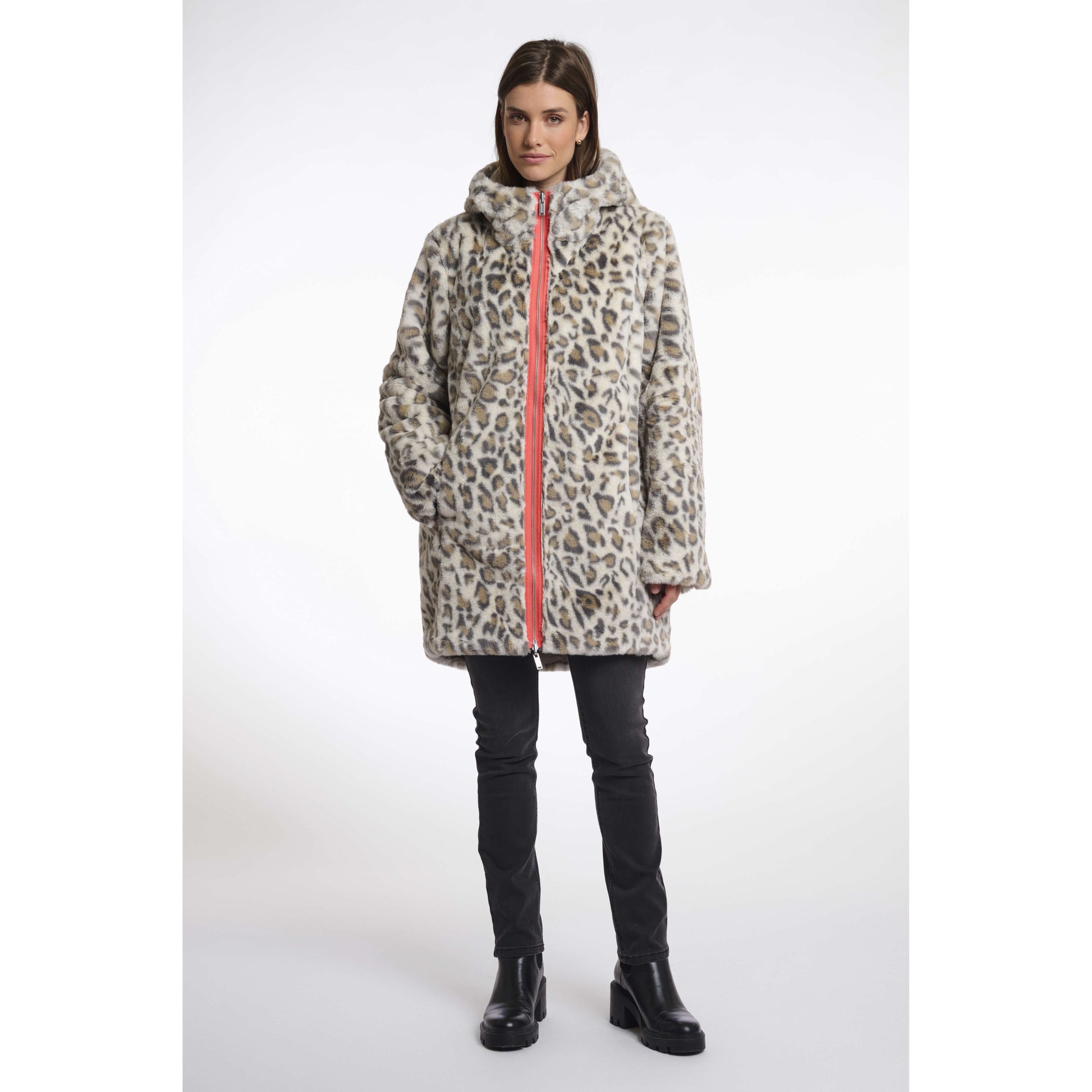 verso en fourrure ultra douce, imprimé léopard fond beige clair.
