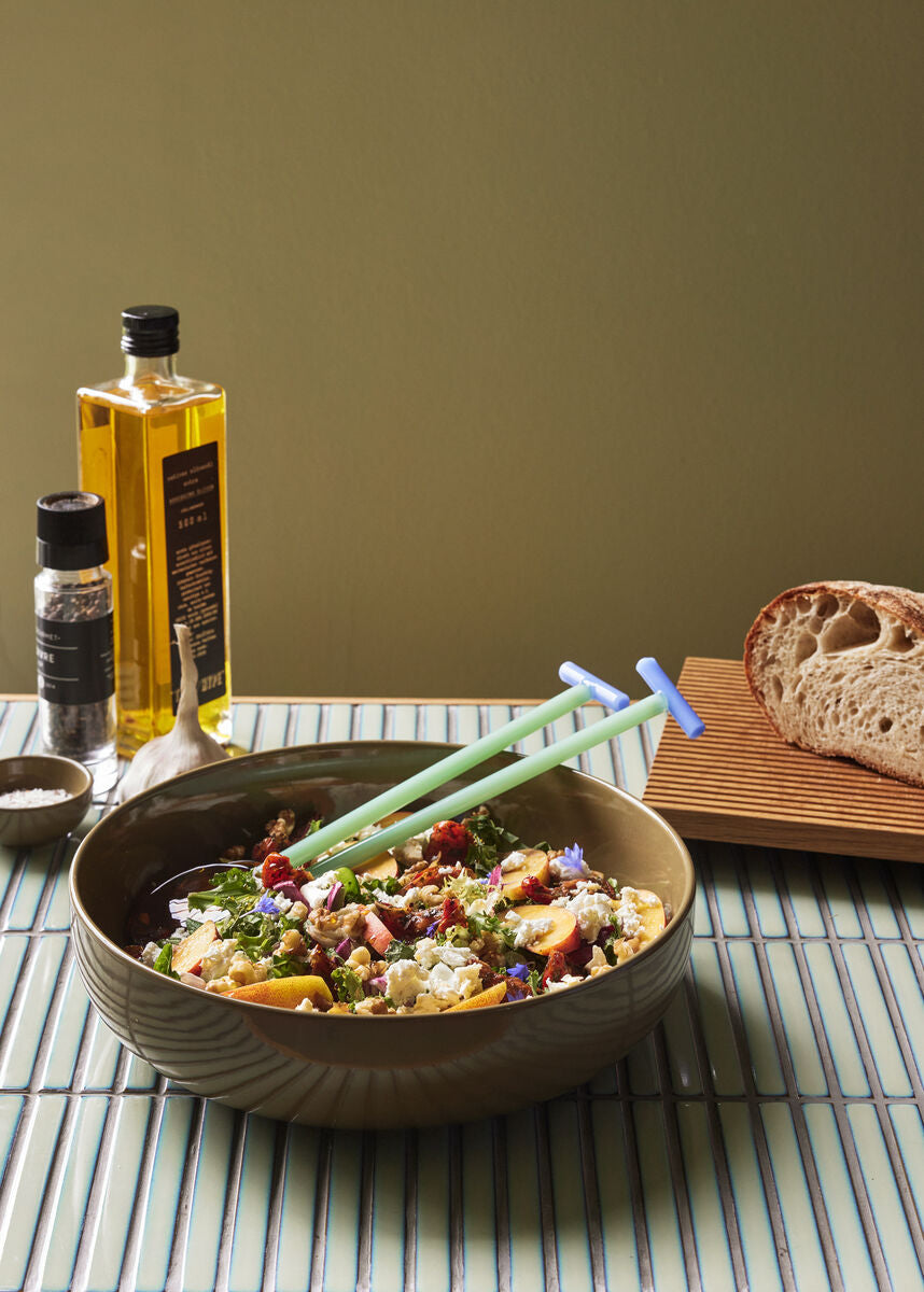 L'approche unique du design, qui intègre des carreaux de couleur menthe sur le plateau, évoque la nostalgie des beaux meubles de l'enfance.