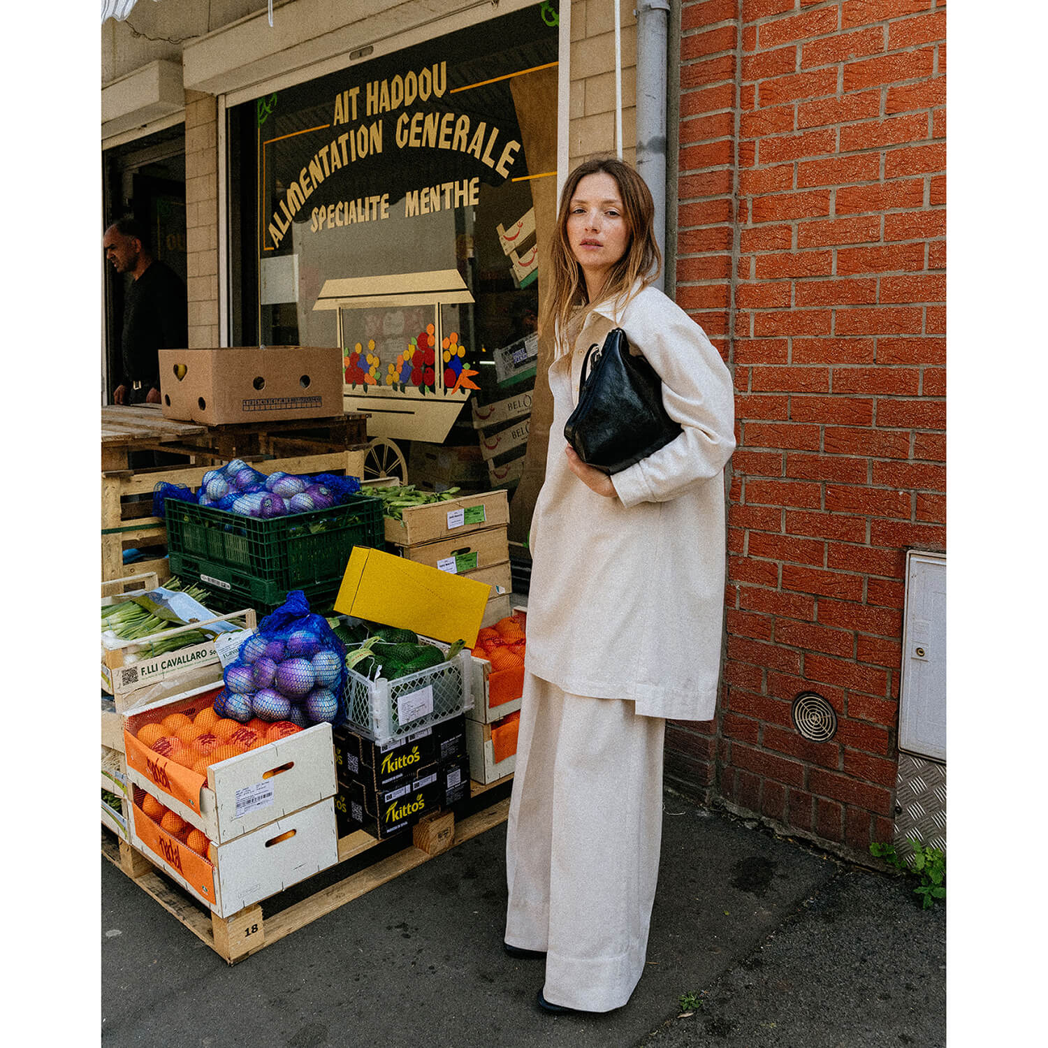 Coupée dans une belle flanelle écru chiné, épaisse et douce.